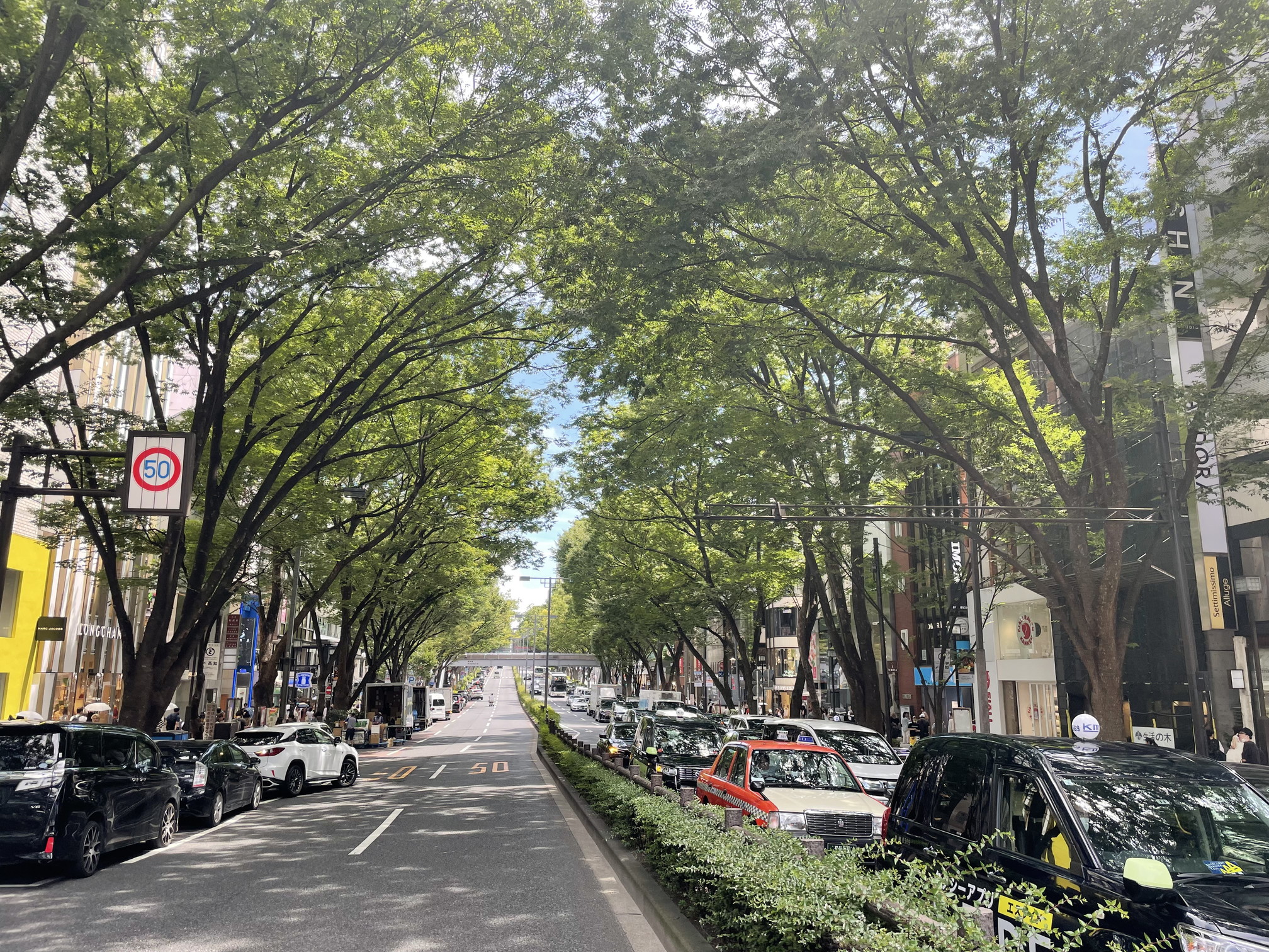 都市に降り注ぐ、真夏の強烈な日差しを大きな樹冠で遮る効果が高い街路樹である