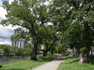 2022年7月22日 / 最終更新日 : 2022年8月1日 青空田中 白川緑の区間(熊本県熊本市) 熊本市中心部。白川の拡張に伴い高木を20mほど東側にスライドバックした。そこが緑の区間として整備され、水辺の都市の回廊として美しい風景をかもし出している。週末はマルシェでにぎわうまちなかの貴重なスポットです。