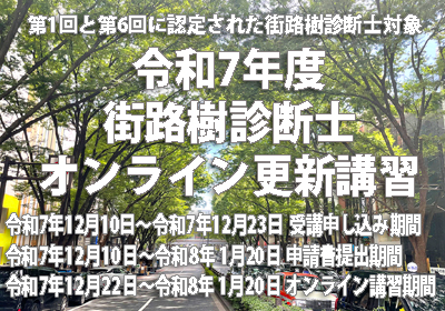 【会員専用】令和7年度街路樹診断士オンライン更新講習のお知らせ